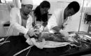 Cambodian Soeum Phallin is 9 months old. Brought into the Italian run "Emergency" hospital in a mud pack wrapped in banana leaves, she has at least 45% burns from boiling water.